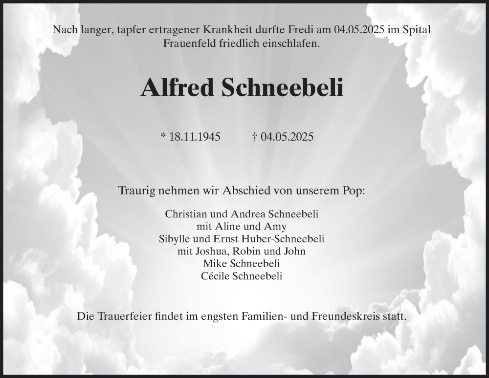 Hier finden Sie alle Traueranzeigen aus der Zeitung, die bisher für Alfred Schneebeli erschienen sind. Weitere Traueranzeigen, die in der Zeitung erscheinen, werden hier ebenfalls aufgelistet