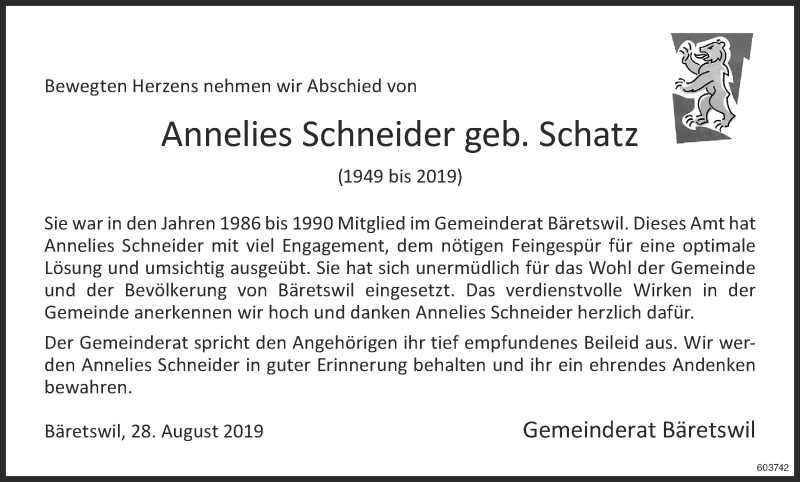 Hier finden Sie alle Traueranzeigen aus der Zeitung, die bisher für Annelies Schneider erschienen sind. Weitere Traueranzeigen, die in der Zeitung erscheinen, werden hier ebenfalls aufgelistet