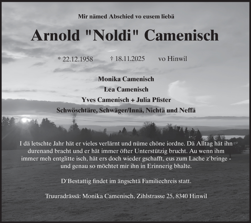 Hier finden Sie alle Traueranzeigen aus der Zeitung, die bisher für Arnold Camenisch erschienen sind. Weitere Traueranzeigen, die in der Zeitung erscheinen, werden hier ebenfalls aufgelistet