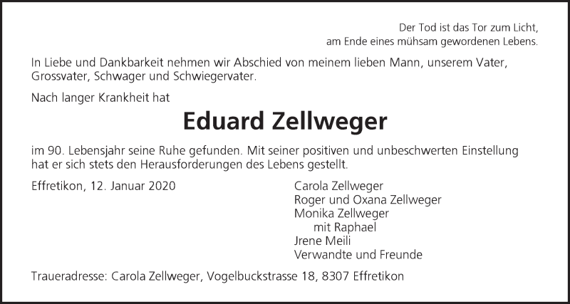 Hier finden Sie alle Traueranzeigen aus der Zeitung, die bisher für Eduard Zellweger erschienen sind. Weitere Traueranzeigen, die in der Zeitung erscheinen, werden hier ebenfalls aufgelistet