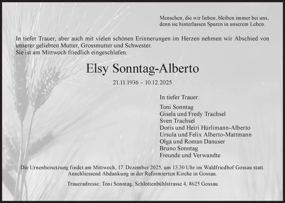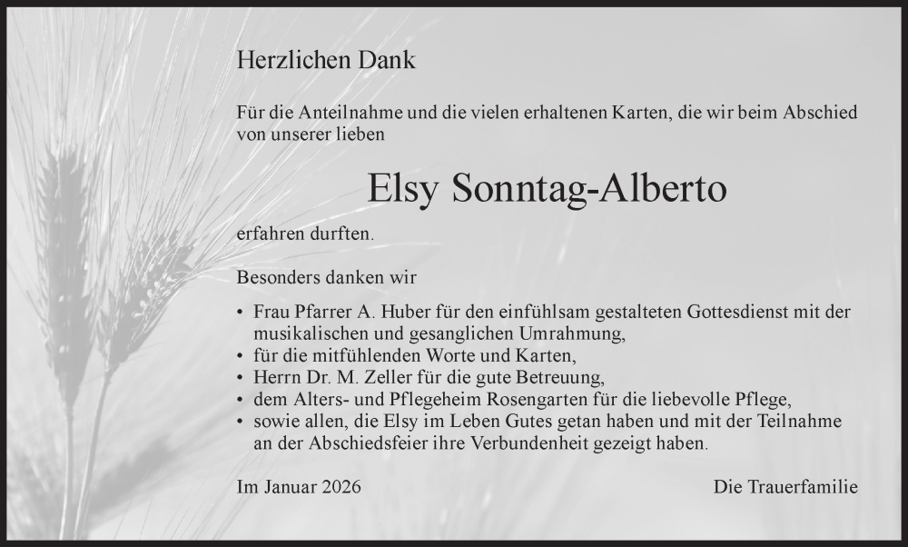 Hier finden Sie alle Traueranzeigen aus der Zeitung, die bisher für Elsy Sonntag-Alberto erschienen sind. Weitere Traueranzeigen, die in der Zeitung erscheinen, werden hier ebenfalls aufgelistet