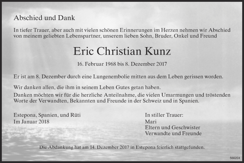 Hier finden Sie alle Traueranzeigen aus der Zeitung, die bisher für Eric Christian Kunz erschienen sind. Weitere Traueranzeigen, die in der Zeitung erscheinen, werden hier ebenfalls aufgelistet