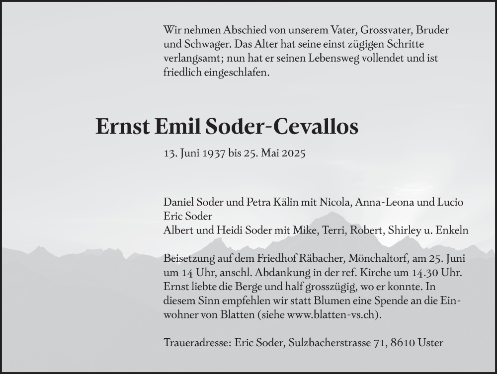 Hier finden Sie alle Traueranzeigen aus der Zeitung, die bisher für Ernst Emil Soder-Cevallos erschienen sind. Weitere Traueranzeigen, die in der Zeitung erscheinen, werden hier ebenfalls aufgelistet