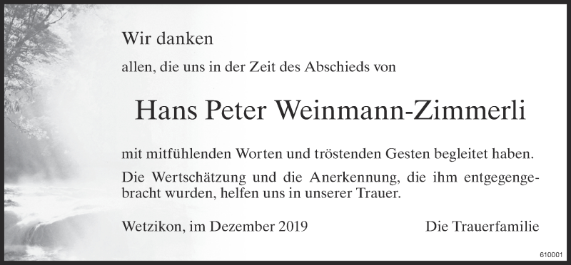 Hier finden Sie alle Traueranzeigen aus der Zeitung, die bisher für Hans Peter Weinmann-Zimmerli erschienen sind. Weitere Traueranzeigen, die in der Zeitung erscheinen, werden hier ebenfalls aufgelistet
