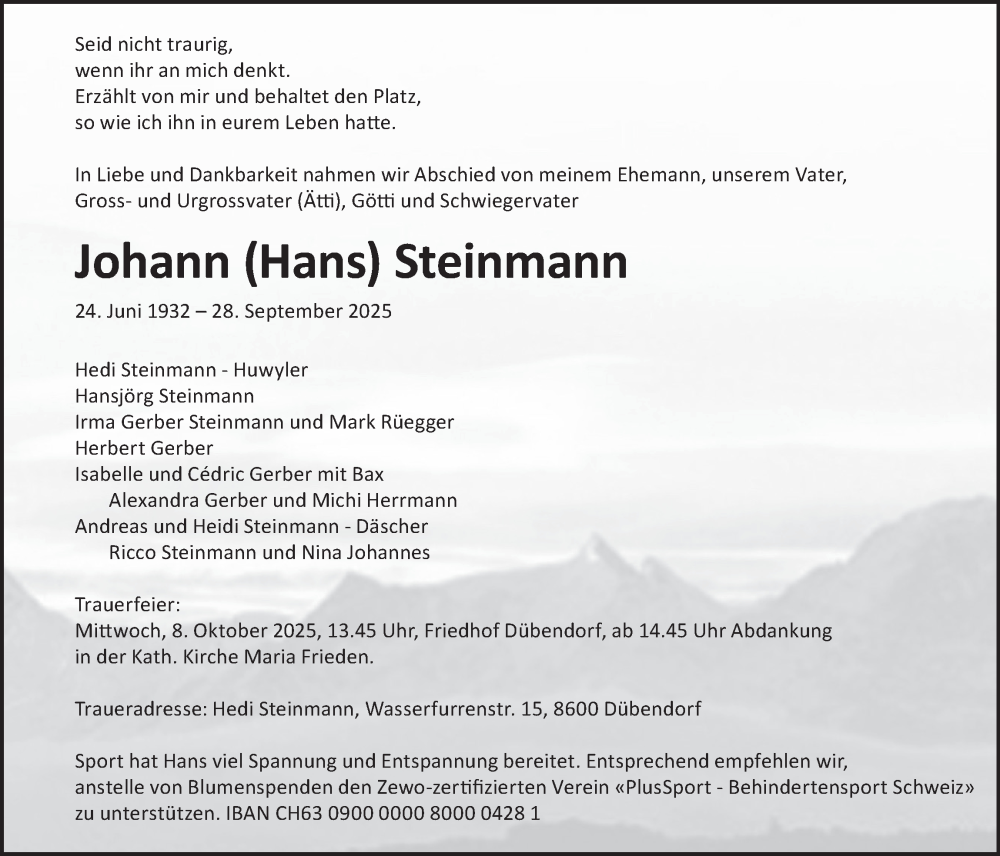 Hier finden Sie alle Traueranzeigen aus der Zeitung, die bisher für Johann Steinmann erschienen sind. Weitere Traueranzeigen, die in der Zeitung erscheinen, werden hier ebenfalls aufgelistet