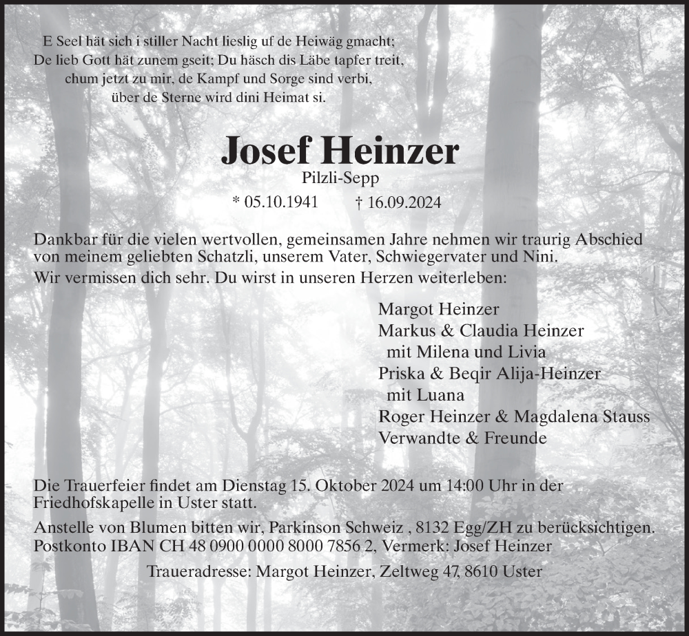 Hier finden Sie alle Traueranzeigen aus der Zeitung, die bisher für Josef Heinzer erschienen sind. Weitere Traueranzeigen, die in der Zeitung erscheinen, werden hier ebenfalls aufgelistet