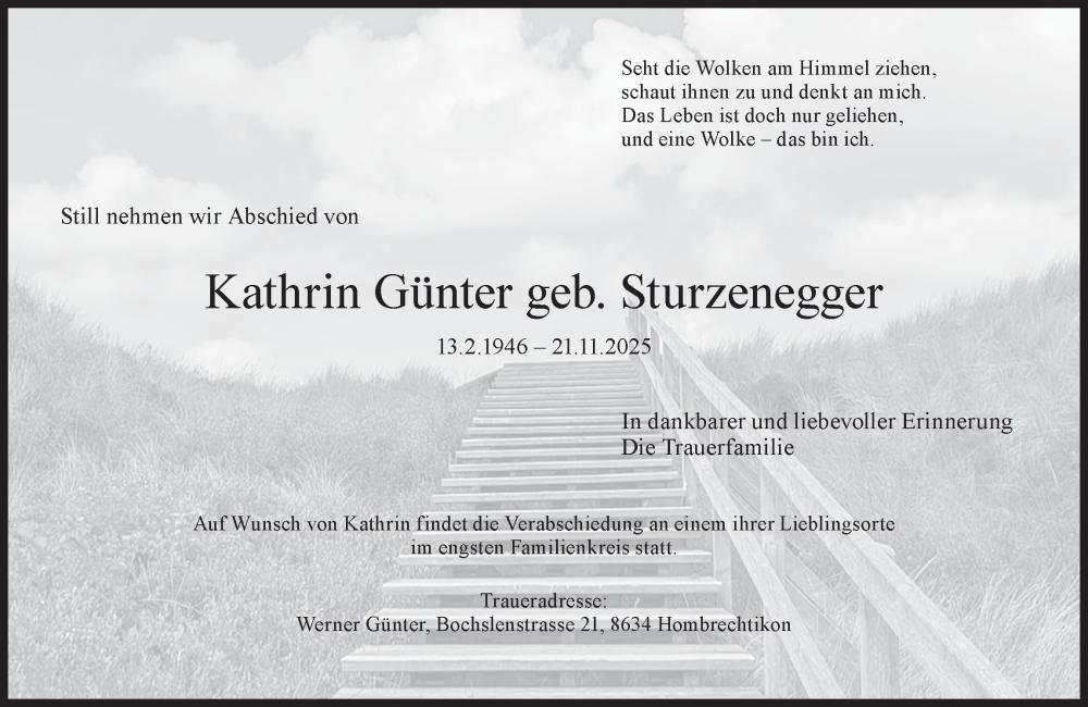 Hier finden Sie alle Traueranzeigen aus der Zeitung, die bisher für Kathrin Günter erschienen sind. Weitere Traueranzeigen, die in der Zeitung erscheinen, werden hier ebenfalls aufgelistet