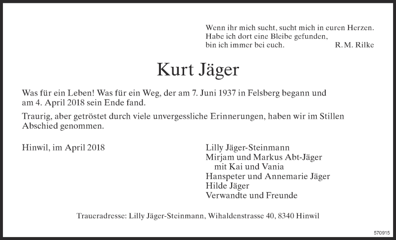 Hier finden Sie alle Traueranzeigen aus der Zeitung, die bisher für Kurt Jäger erschienen sind. Weitere Traueranzeigen, die in der Zeitung erscheinen, werden hier ebenfalls aufgelistet