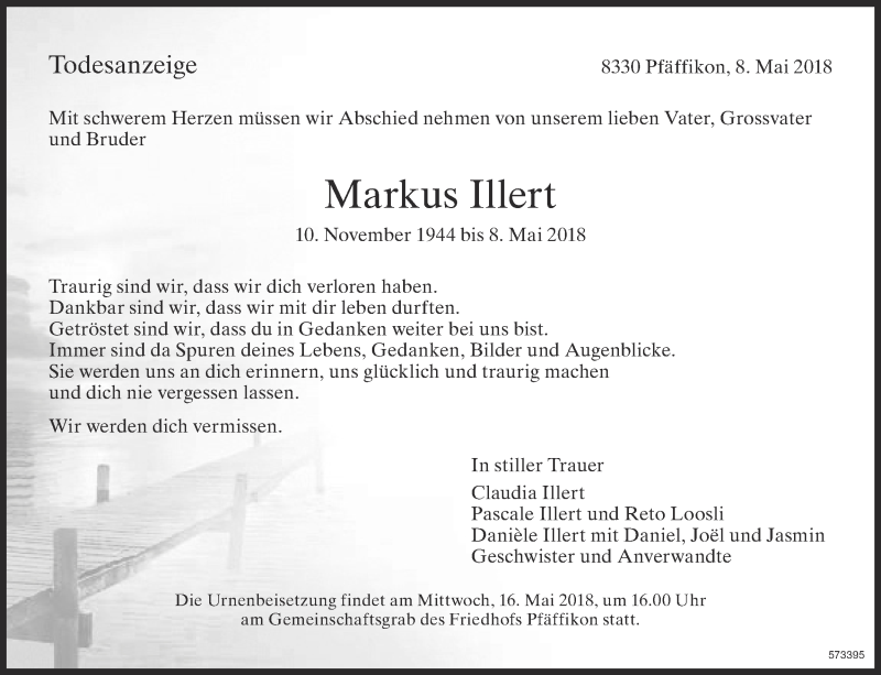 Hier finden Sie alle Traueranzeigen aus der Zeitung, die bisher für Markus Illert erschienen sind. Weitere Traueranzeigen, die in der Zeitung erscheinen, werden hier ebenfalls aufgelistet