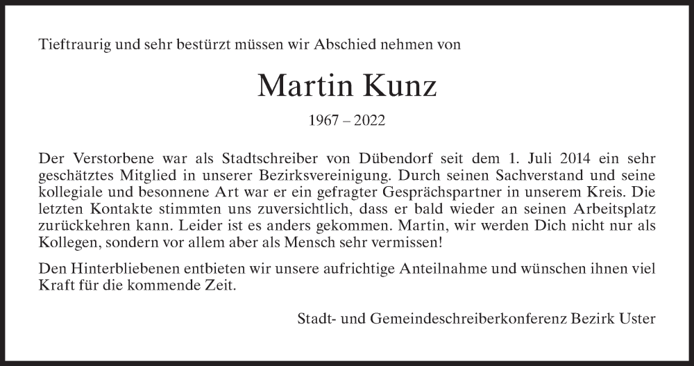 Hier finden Sie alle Traueranzeigen aus der Zeitung, die bisher für Martin Kunz erschienen sind. Weitere Traueranzeigen, die in der Zeitung erscheinen, werden hier ebenfalls aufgelistet