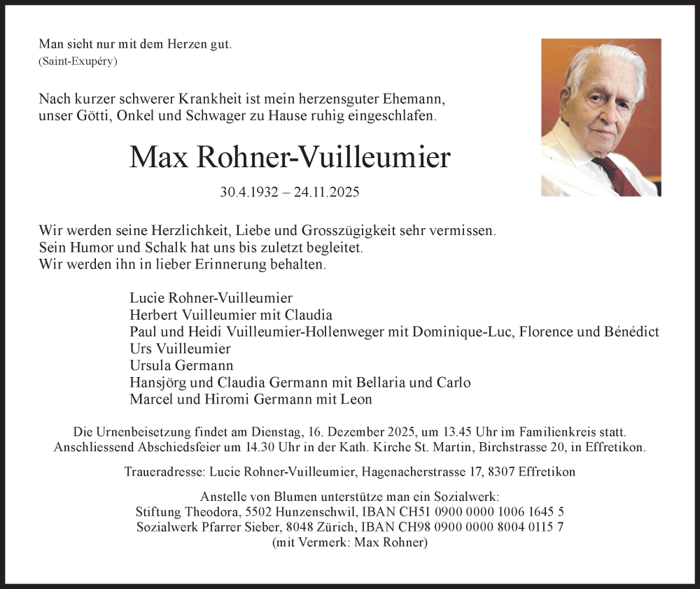 Hier finden Sie alle Traueranzeigen aus der Zeitung, die bisher für Max Rohner-Vuilleumier erschienen sind. Weitere Traueranzeigen, die in der Zeitung erscheinen, werden hier ebenfalls aufgelistet
