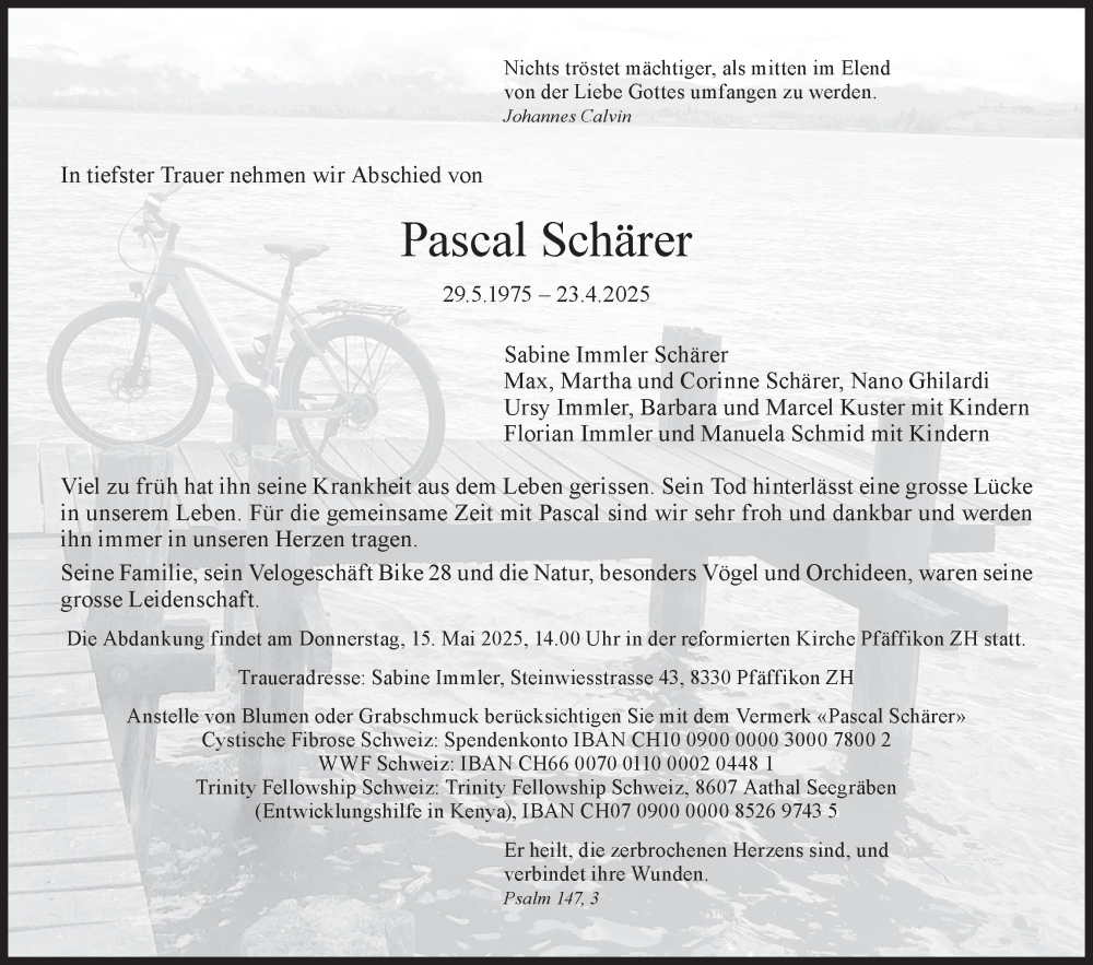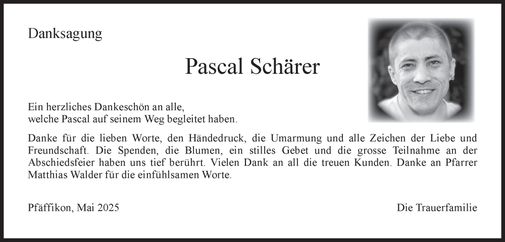 Hier finden Sie alle Traueranzeigen aus der Zeitung, die bisher für Pascal Schärer erschienen sind. Weitere Traueranzeigen, die in der Zeitung erscheinen, werden hier ebenfalls aufgelistet