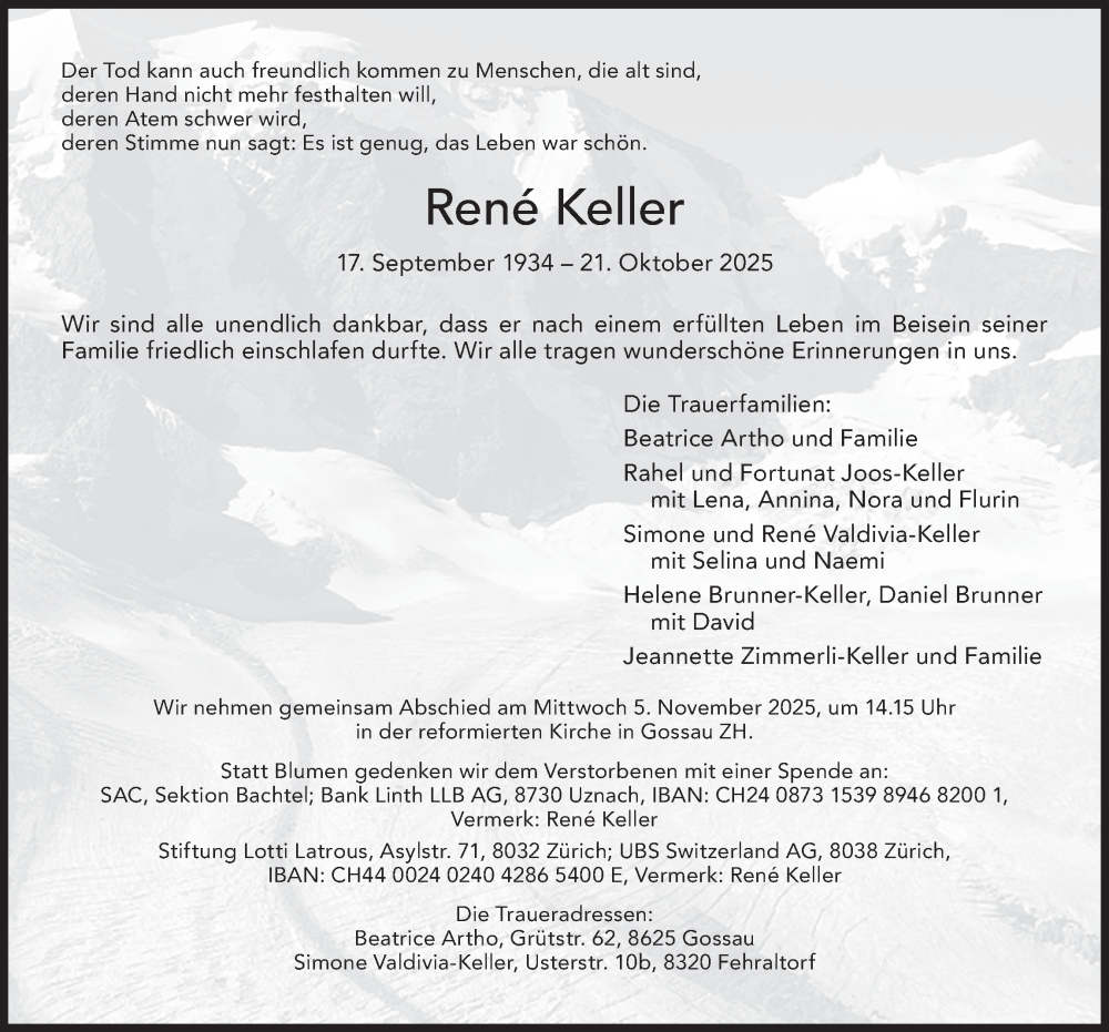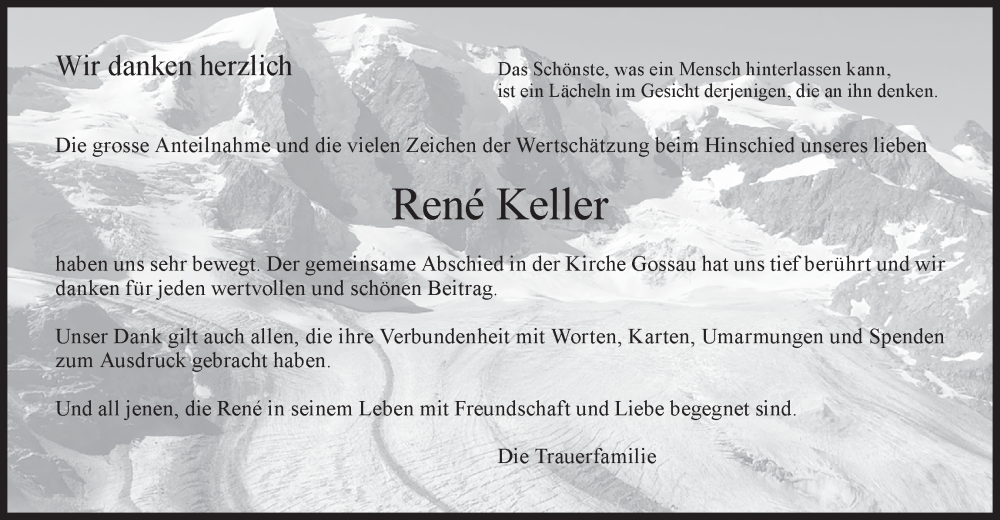 Hier finden Sie alle Traueranzeigen aus der Zeitung, die bisher für René Keller erschienen sind. Weitere Traueranzeigen, die in der Zeitung erscheinen, werden hier ebenfalls aufgelistet