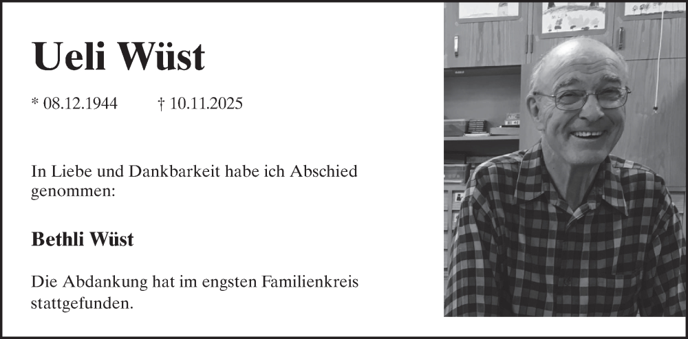 Hier finden Sie alle Traueranzeigen aus der Zeitung, die bisher für Ueli Wüst erschienen sind. Weitere Traueranzeigen, die in der Zeitung erscheinen, werden hier ebenfalls aufgelistet